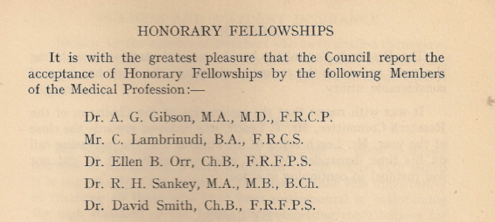 Lambrinudi was awarded an Honorary Fellowship in 1937 – this excerpt is taken from the AGM minutes of that year.