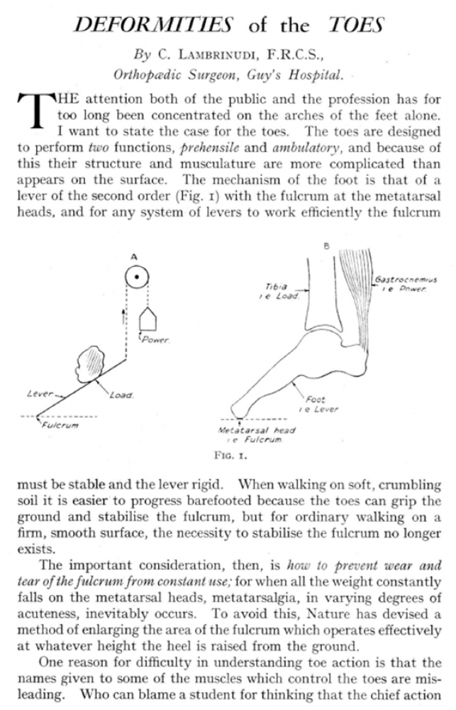 As well as the Lambrinudi piece, there were two different articles on feet contributed by renowned surgeons from the Mayo Clinic, Rochester, Minnesota. This renowned clinic was first opened in 1864 by Dr William Worrall Mayo. In 1915, the Mayo Foundation was established and its work in healthcare, education, research, and patient centered care continues today.