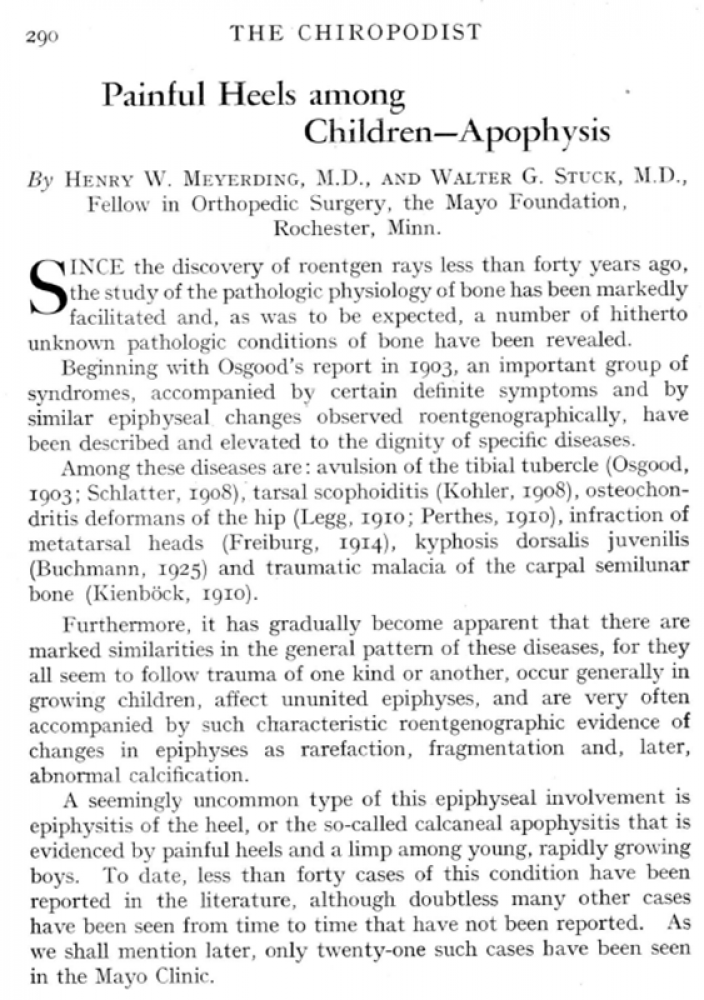 The first of these articles (regarding painful heels in children) was co-authored by Henry William Meyerding and Walter Goodloe Stuck.