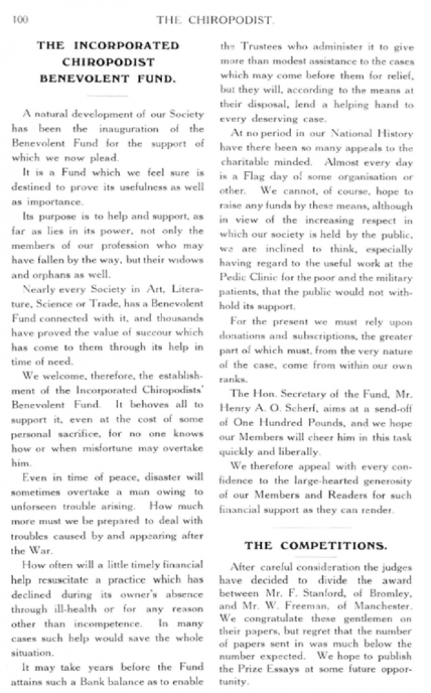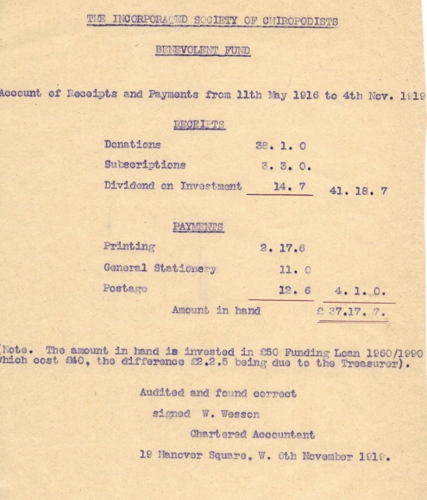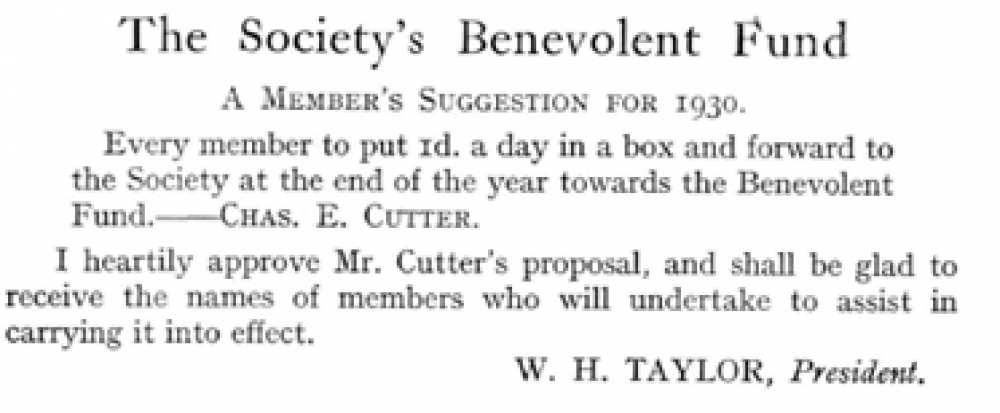 From the outset, the Incoporated Society made the establishment of a Benevolent Fund a priority. In September 1916, the founders outlined their vision for the new fund: