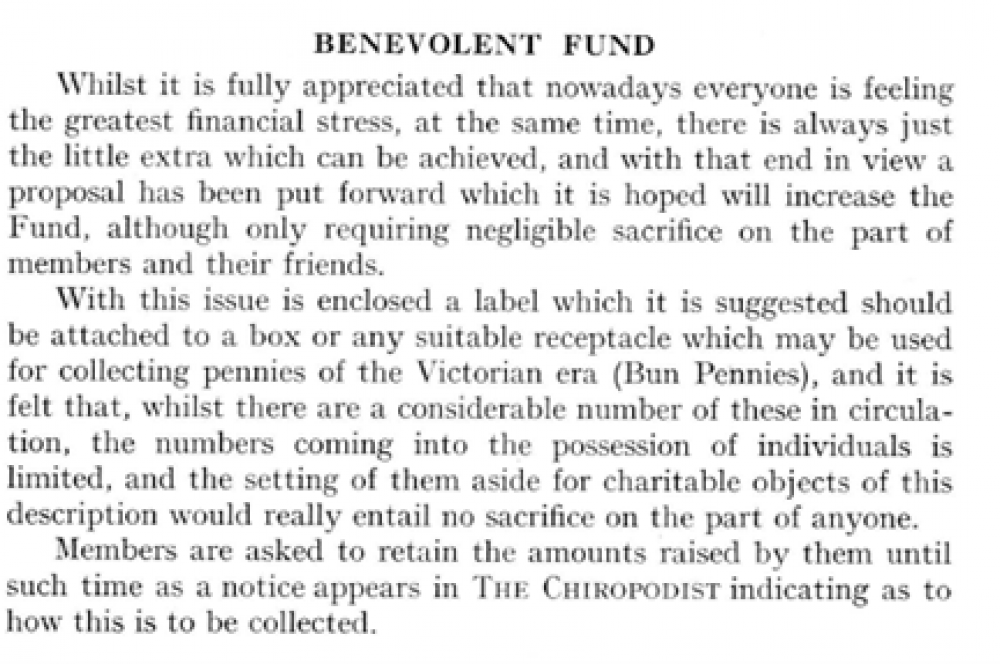 In addition, ideas for raising funds were sent to The Chiropodist from members themselves. Two examples here from 1929 and April 1937.